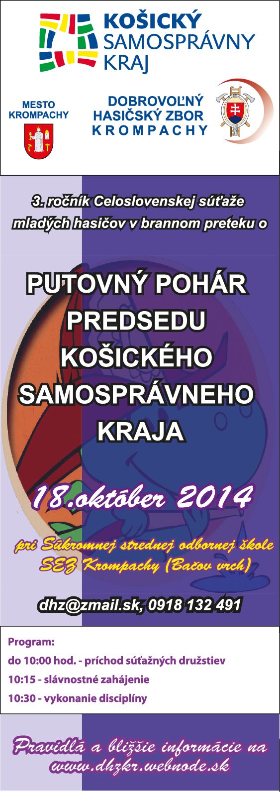 Propozície na celoslovenskú súťaž mladých hasičov v brannom preteku o "Putovný pohár predsedu Košického samosprávneho kraja". 18. október 2014, Kropachy.